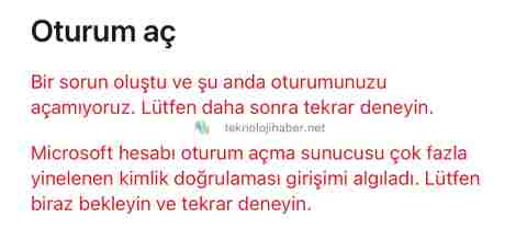 Hesaptan Kaynaklı Şu anda Oturumunuzu Açamıyoruz Hatası