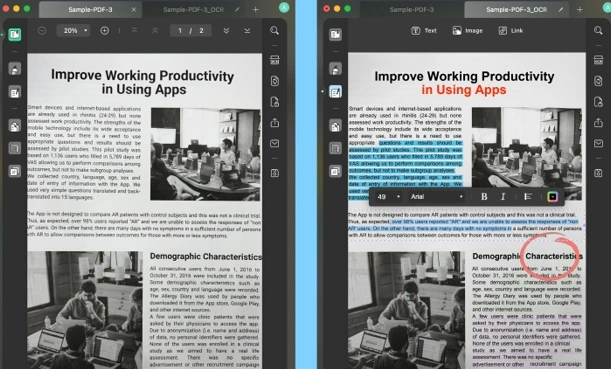 Her iki PDF düzenleyici de taranmış PDF’leri OCR teknolojisi kullanarak Word, Excel veya diğer formatlara dönüştürebilir. Ancak iLovePDF, taranmış PDF’leri 38 dilde düzenlenebilir ve aranabilir PDF’lere dönüştürmeye izin vermez. Buna karşılık, bazı ücretli ve nadiren de olsa ücretsiz PDF uygulamaları bu özelliği sunabilir.
